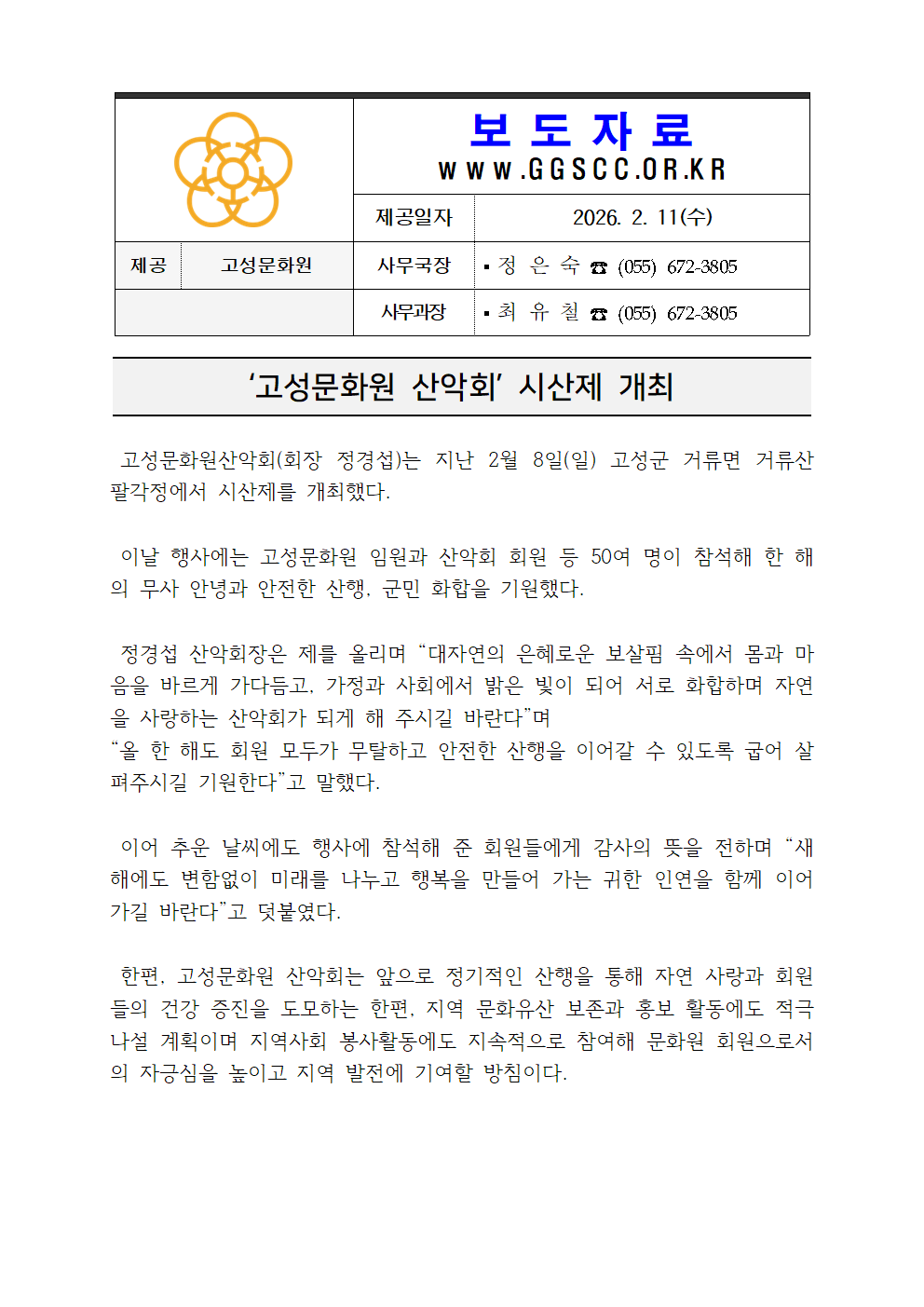 '고성문화원 산악회' 시산제 개최